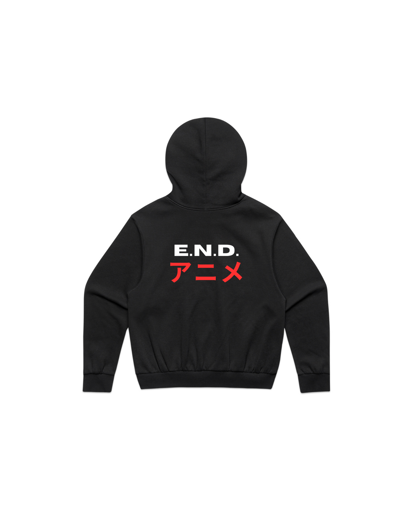 Unisex Fleece Hoodie. E.N.D. PIECE LOGO over left chest and E.N.D. Anime logo on back.