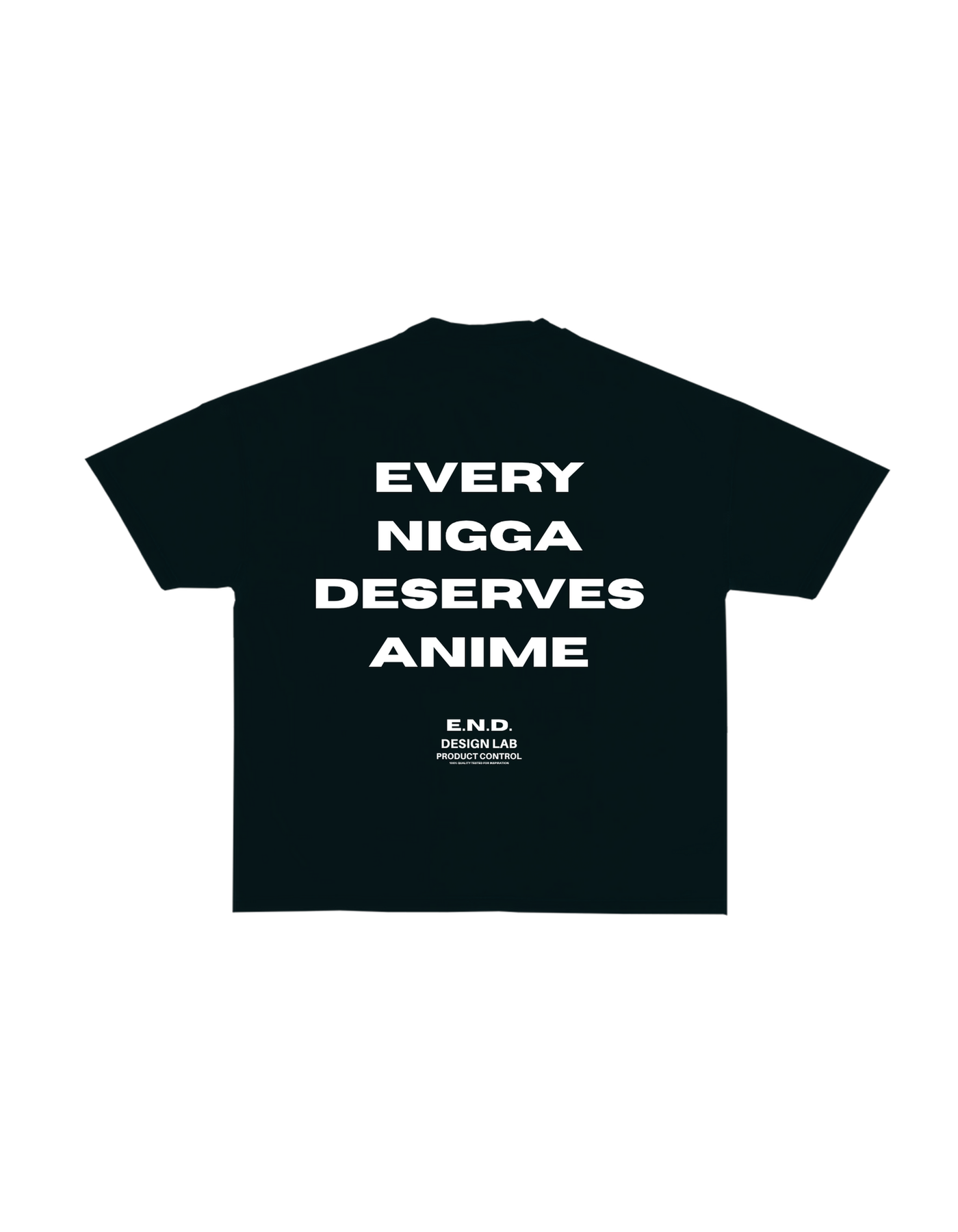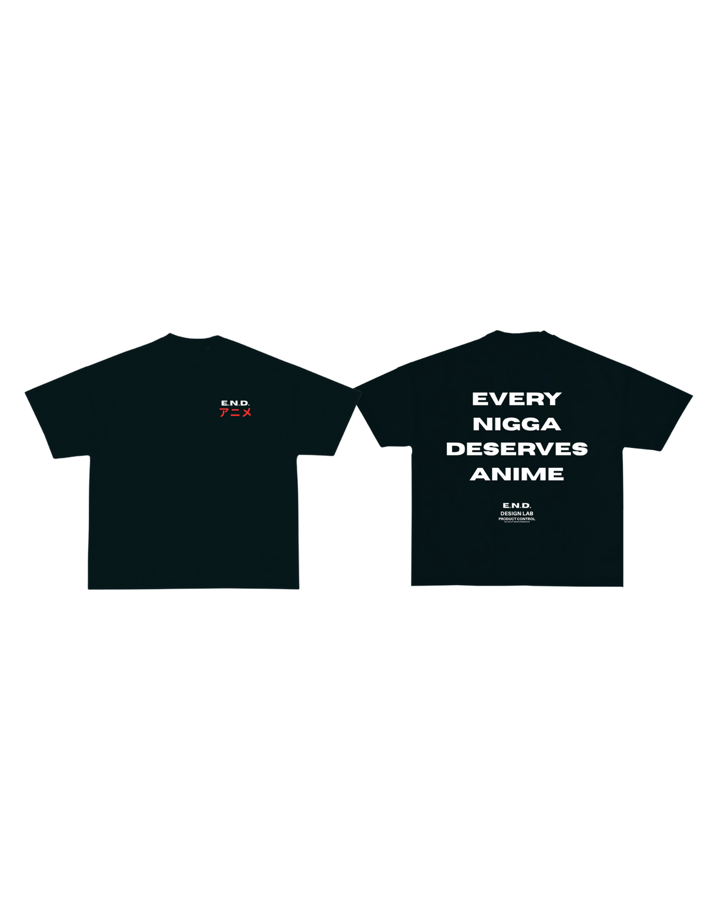 100% COTTON - Oversized cropped T with drop shoulders with E.N.D. Anime logo over left heart. EVERY NIGGA DESERVES ANIME and E.N.D. Design logo on the back.